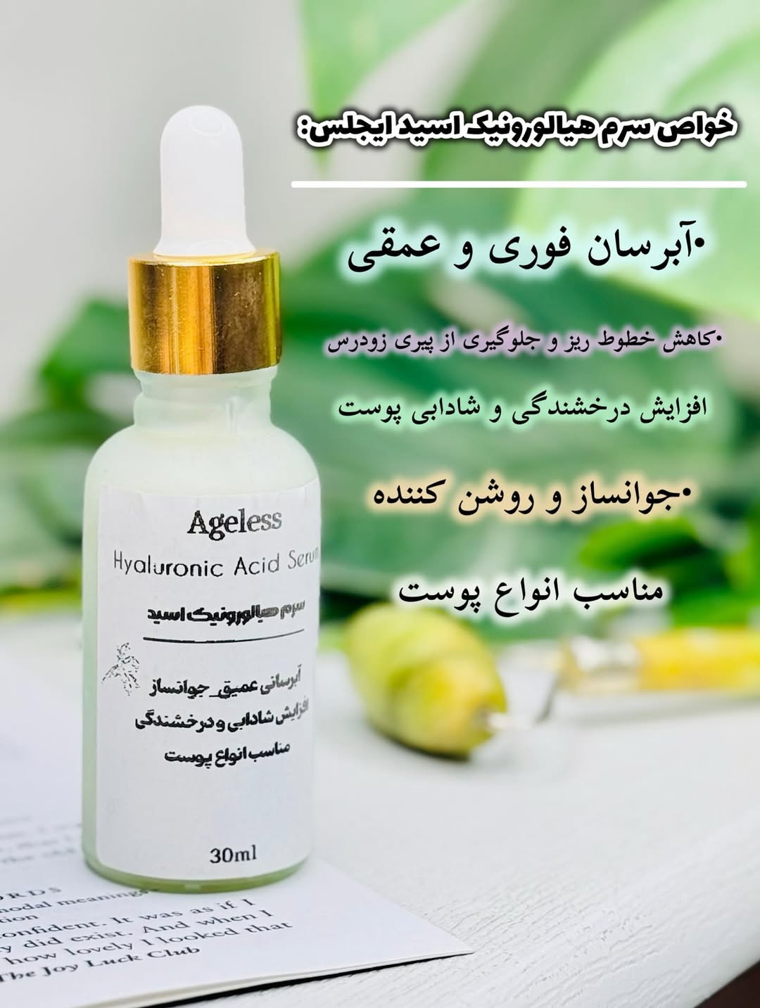 سرمی که برای پوستت فقط یک آبرسان ساده نیست… یک فرمول لوکس و تخصصی برای جوانسازی و درخشندگیه. ترکیبات کلیدی: هیالورونیک اسید خالص → آبرسانی عمقی، جذب ۱۰۰۰ برابر آب ویتامین B5 → ترمیمکننده و ضدالتهاب عصاره آووکادو → جوانساز و تغذیهکننده پوست آلوئهورا → آرامشبخش و نرمکننده خواص سرم هیالورونیک اسید Ageless: آبرسانی فوری و عمیق کاهش خطوط ریز و جلوگیری از پیری زودرس افزایش درخشندگی و شادابی پوست مناسب انواع پوست.