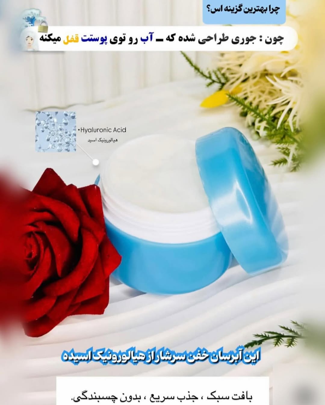 این محصول همزمان آبرسان و مرطوبکنندهست که جذب خیلی سبک و سریعی دارد و خشکی و کشیدگی پوست را از بین میبرد، باعث میشود پوست نرم، شفاف و پرانرژی بماند.